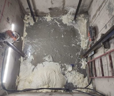 Asansör kuyusu zemin birleşim bölgelerindeki soğuk derz bölgelerine poliüretan enjeksiyon uygulaması yapılması gerekmektedir